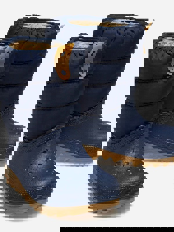 Introducing the Kids Classic Neo Puff Boots in Navy by Crocs – the epitome of style and practicality for every child's nonseasonal wear. These boots blend high-end design with everyday comfort for endless adventures. Features include:
