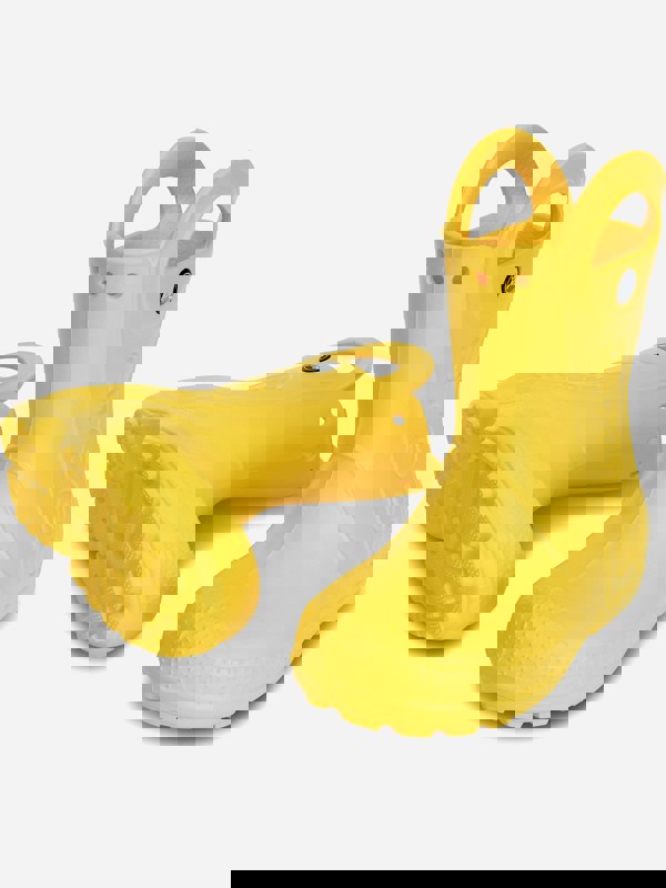 Crocs Kids Handle It Rain Boots bring a bright yellow finish to wet-weather footwear. Made from Croslite™ material, they keep the feel lightweight while offering a practical option for rainy days. Easy-on handles support quick pull-on and removal, sized for little hands.