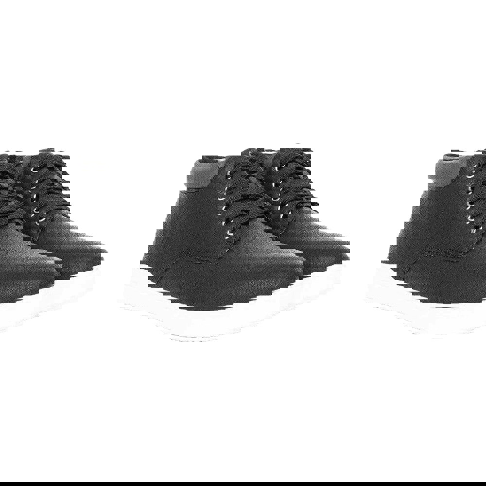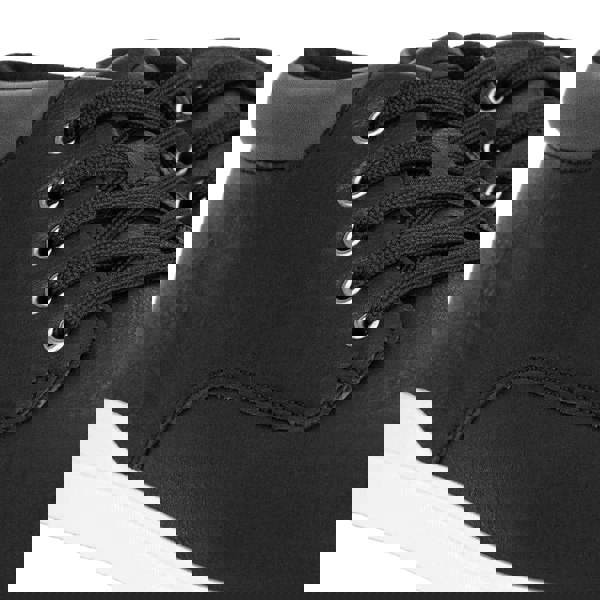 These Crosshatch Alistair trainers are finished in black faux leather PU (polyurethane) with a textile lining and a durable rubber outsole. The mid-cut profile is paired with a flat heel and a round toe for a clean, everyday look.