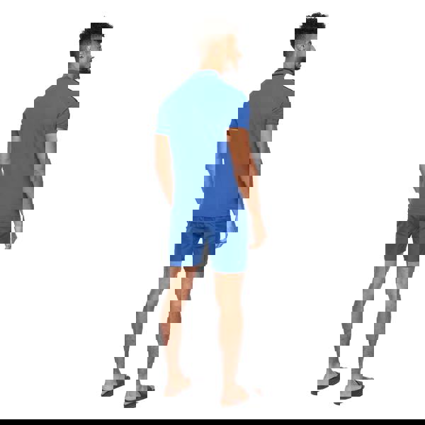 The Crosshatch Mens Allred polo shirt comes in blue and is made from 100% cotton piqué. It has a short-sleeved cut with a turn down collar and a three-button placket for a classic polo finish. Contrast detailing is paired with tipped trims, while logo and sleeve print elements add branded definition. Back neck tape and grosgrain tape details complete the construction.