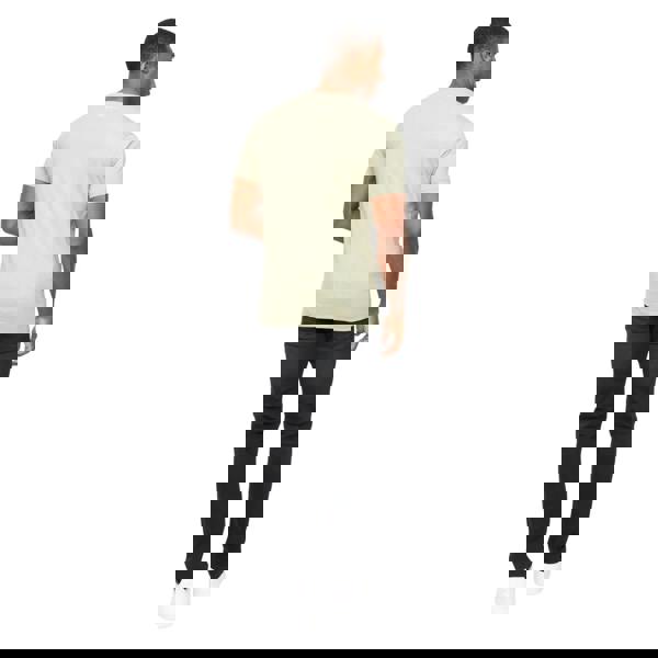 Crosshatch Backdrafts T-shirt in light olive. Made from 100% cotton, it has a crew neckline with a ribbed finish and short sleeves. The design combines logo and text detailing for a clean, casual look.