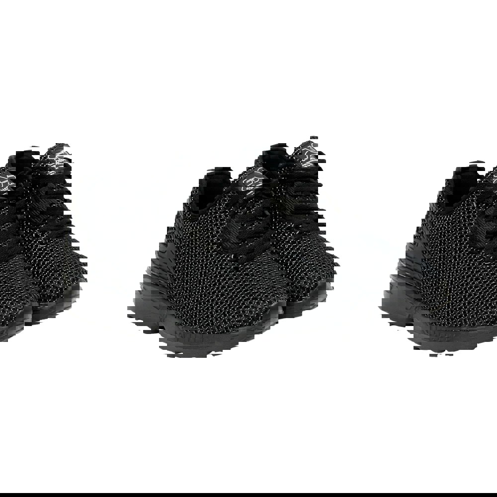 These Crosshatch Bekele MVE trainers come in black with a low-cut profile and a flat heel. The upper combines Flyknit, nylon, PU (polyurethane) and textile, finished with logo and metallic design details. A pointed toe shape and lace-up fastening keep the look clean and structured for everyday wear.