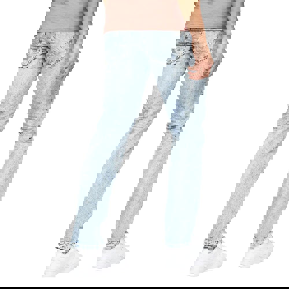Crosshatch Cadman jeans in a light wash, cut in a straight fit for a clean, everyday look. Made from a cotton-rich blend with added polyester, they fasten with a zip fly and button for a classic finish. A buckle belt is included, with belt loops for secure wear, and a branded patch adds a subtle signature detail.