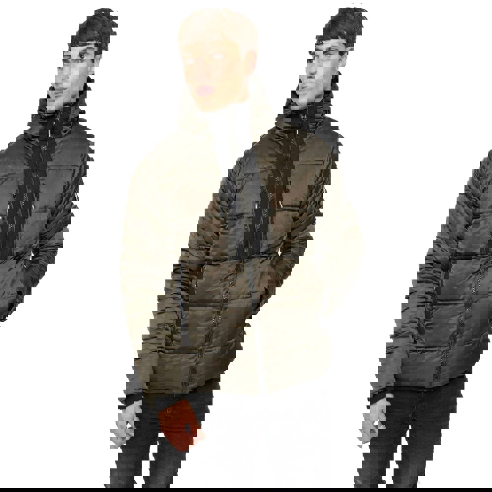 This Crosshatch Chimmax jacket is made from 100% polyester and comes in green. It has a hooded neckline with a sew-on hood and toggle adjuster, plus long sleeves finished with elasticated cuffs. The jacket is lined, padded and quilted, offering a structured outer layer for everyday wear.
