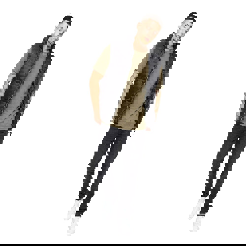This men’s gilet is made with a 100% nylon outer and a 100% polyester lining, finished with branded lining details. The design combines contrast panels with a quilted, padded construction and logo accents, including gel print elements and a branded placket.