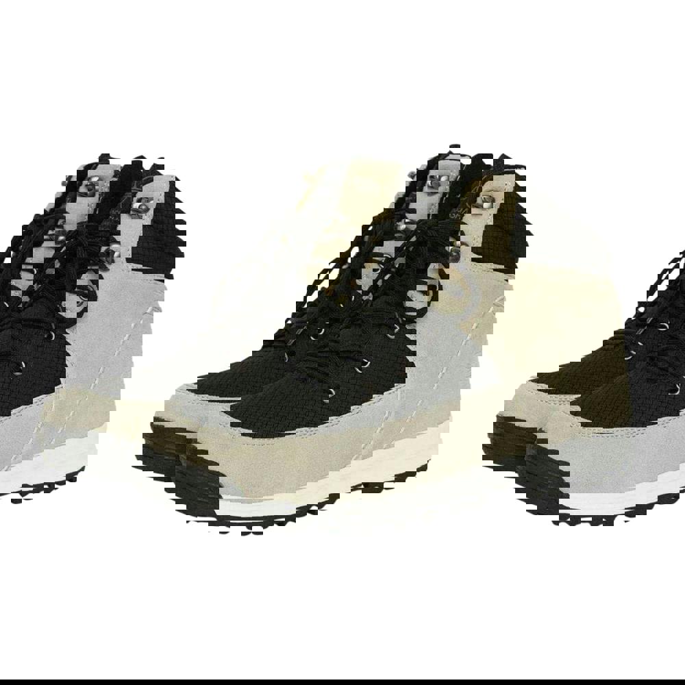 Crosshatch Fordbliss boots in grey with a synthetic upper combining faux suede and nylon. Cut to an ankle height with a round toe and a flat profile, they fasten with laces through six eyelets. The colour block design is finished with logo detailing for a clean, branded look.