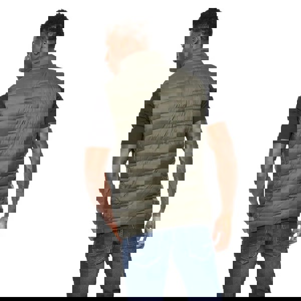This sleeveless gilet is finished in olive with a plain, quilted outer and a logo detail. A standing collar adds structure, while the full zip fastening keeps the front clean and easy to wear for everyday layering.