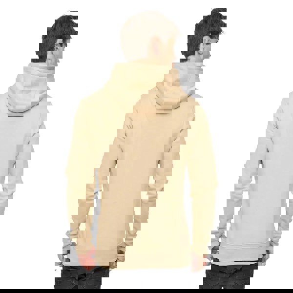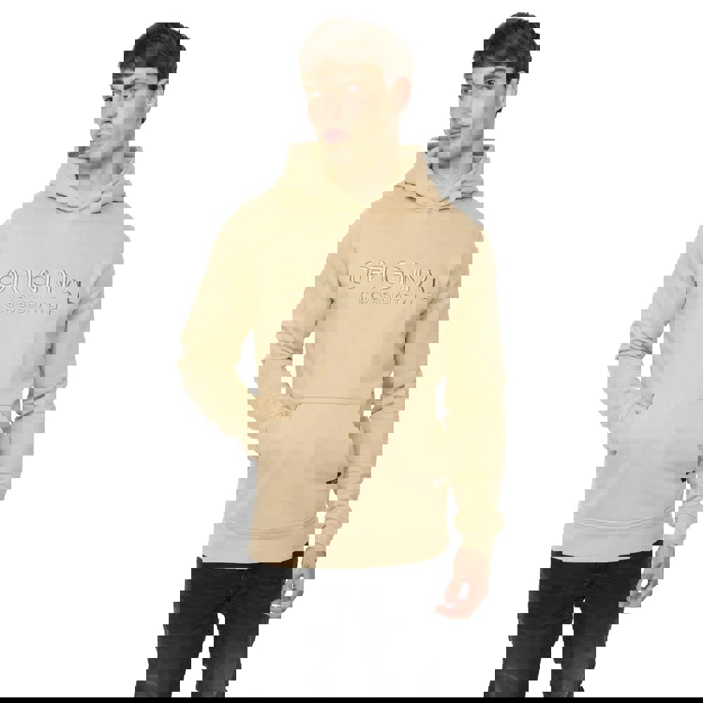 Crosshatch Haromere hoodie in stone, made from a 60% cotton and 40% polyester blend. This long-sleeved pullover has a hooded neckline with a sew-on hood for a clean, structured finish. A kangaroo pocket adds a practical front detail, while ribbed cuffs and a ribbed hem keep the edges neat.