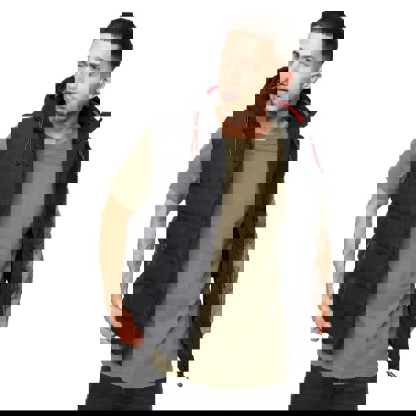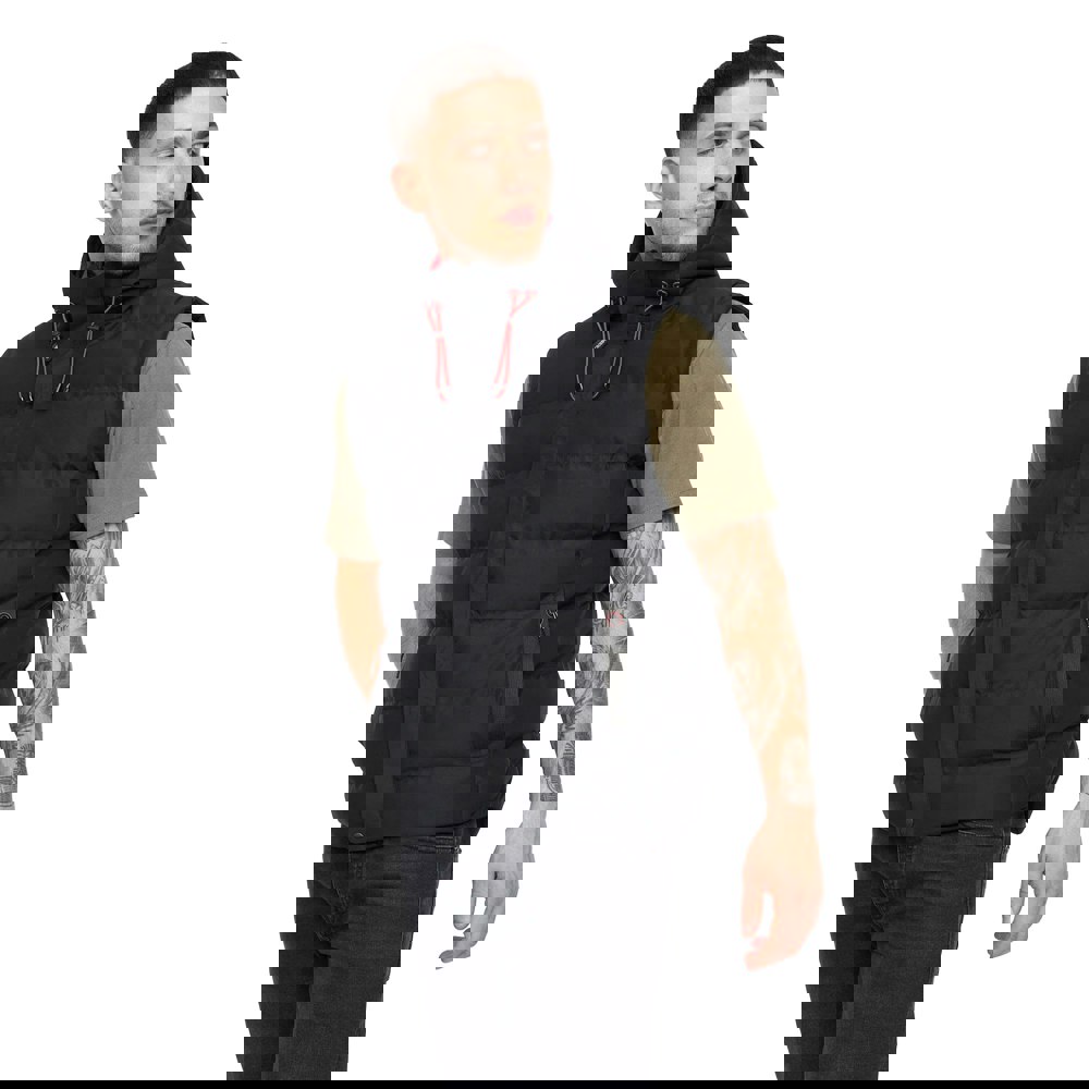 The Crosshatch Kampleys gilet is a sleeveless, hooded layer with a quilted, padded construction and a textured finish. An embossed design is paired with logo detailing, while a woven inner neck adds a considered internal touch. The outer, lining and filling are all made from 100% polyester, with nylon listed as the fabric.