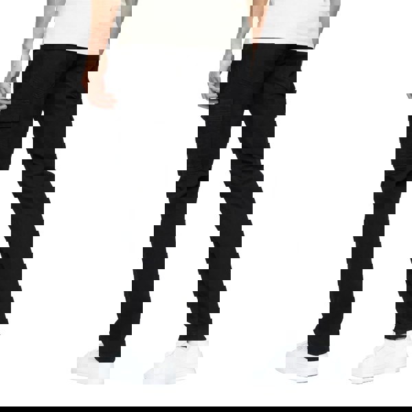 These Crosshatch cargo jeans are made from 98% cotton and 2% elastane in a plain, solid black finish. Cut in a loose fit, they combine classic denim styling with practical cargo detailing for everyday wear.