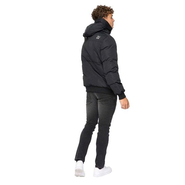 This hooded jacket is made from 100% polyester and finished in black. It fastens with a full zip and has long sleeves for everyday wear. Ribbed cuffs and a ribbed hem add a clean, structured edge, while the logo design keeps the look simple and branded.