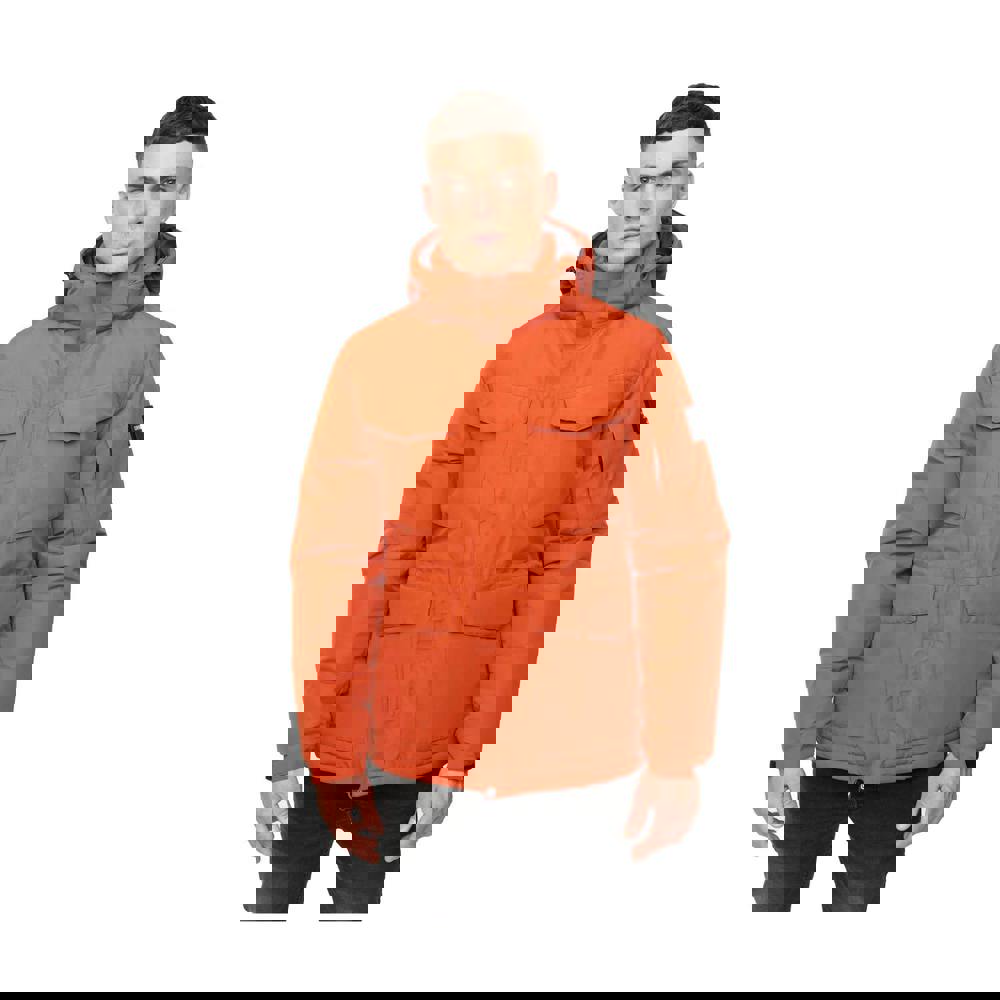 Pockets: 2 Side Pockets, 2 Chest Pockets, Flap Closure, Inside Pocket, 1 Sleeve Pocket, Zip