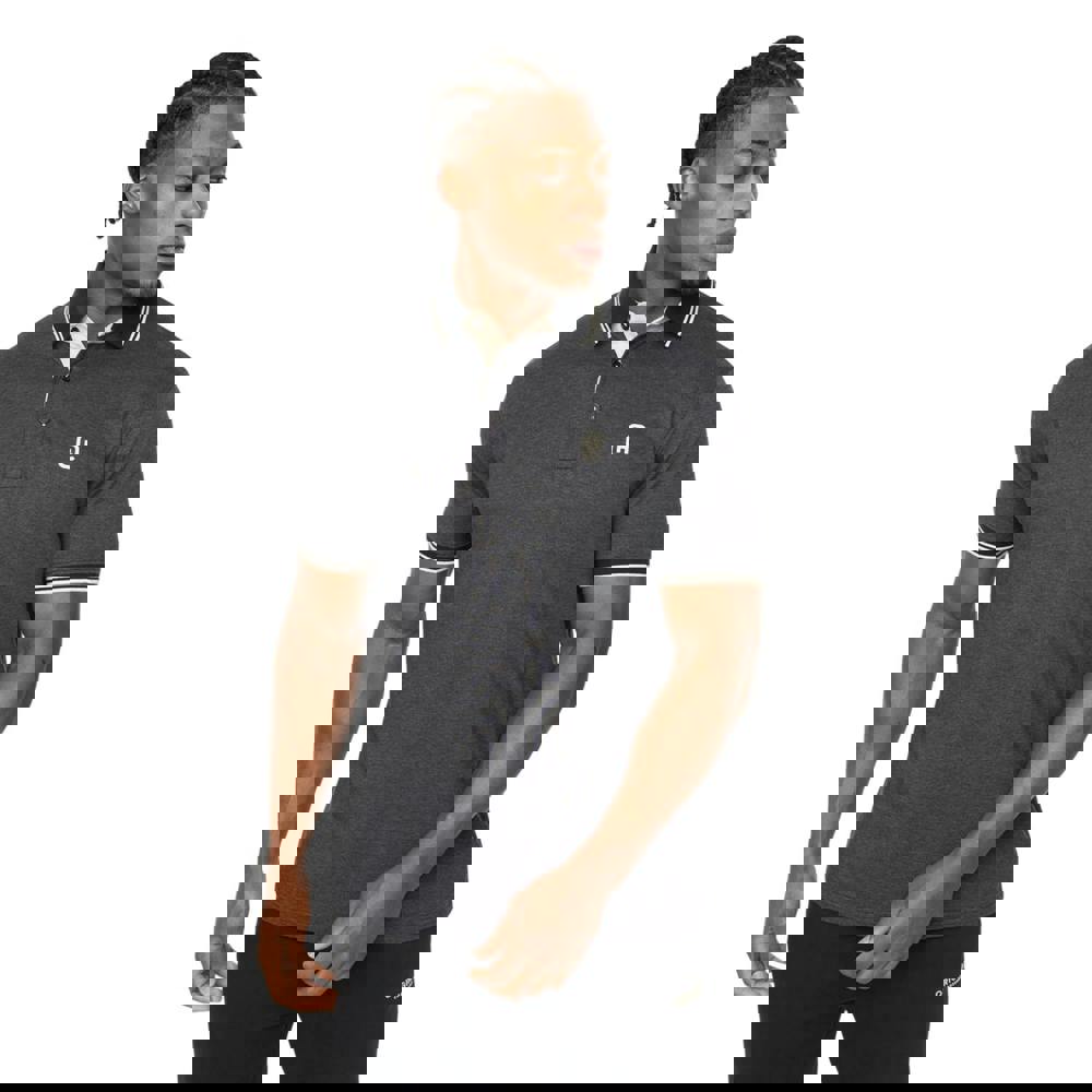 The Crosshatch Preece polo shirt comes in black and is made from 100% cotton with a piqué construction. It has short sleeves and a turn-down collar, finished with a three-button placket for a classic polo look. Branding details include a logo yarn design, a branded neck label and a woven label. Contrast tipping adds a defined edge to the trims.