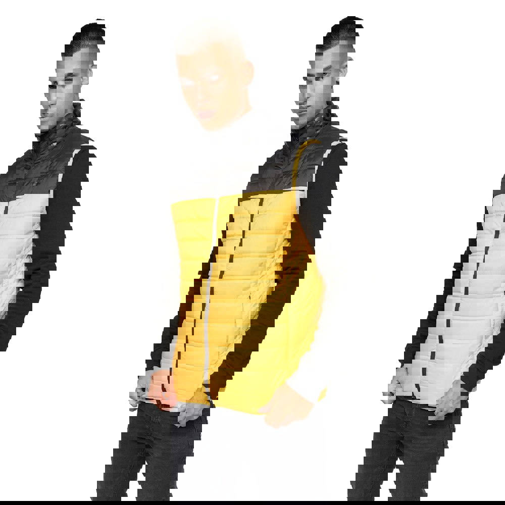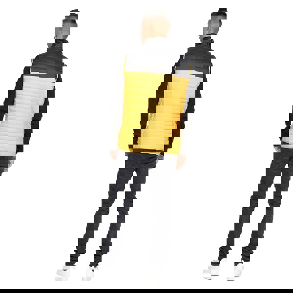 This men’s Presnell gilet from Crosshatch is made from 100% cotton and finished with a quilted, padded construction. The design combines colour-block panels with contrast detailing and a logo, creating a bold look for layering.