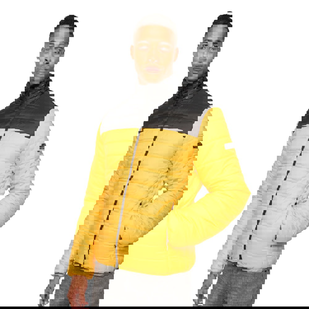 This high-neck jacket is made from 100% polyester and finished with a quilted, padded construction. The colour block design is paired with printed detailing and a logo, creating a bold look for everyday outerwear.