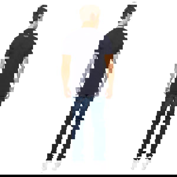 Crosshatch Shoptown T-shirt in navy, made from 100% cotton. The design combines printed text with a logo detail, keeping the look clean and graphic. Finished with a crew neckline and short sleeves, it works well for everyday casual wear.