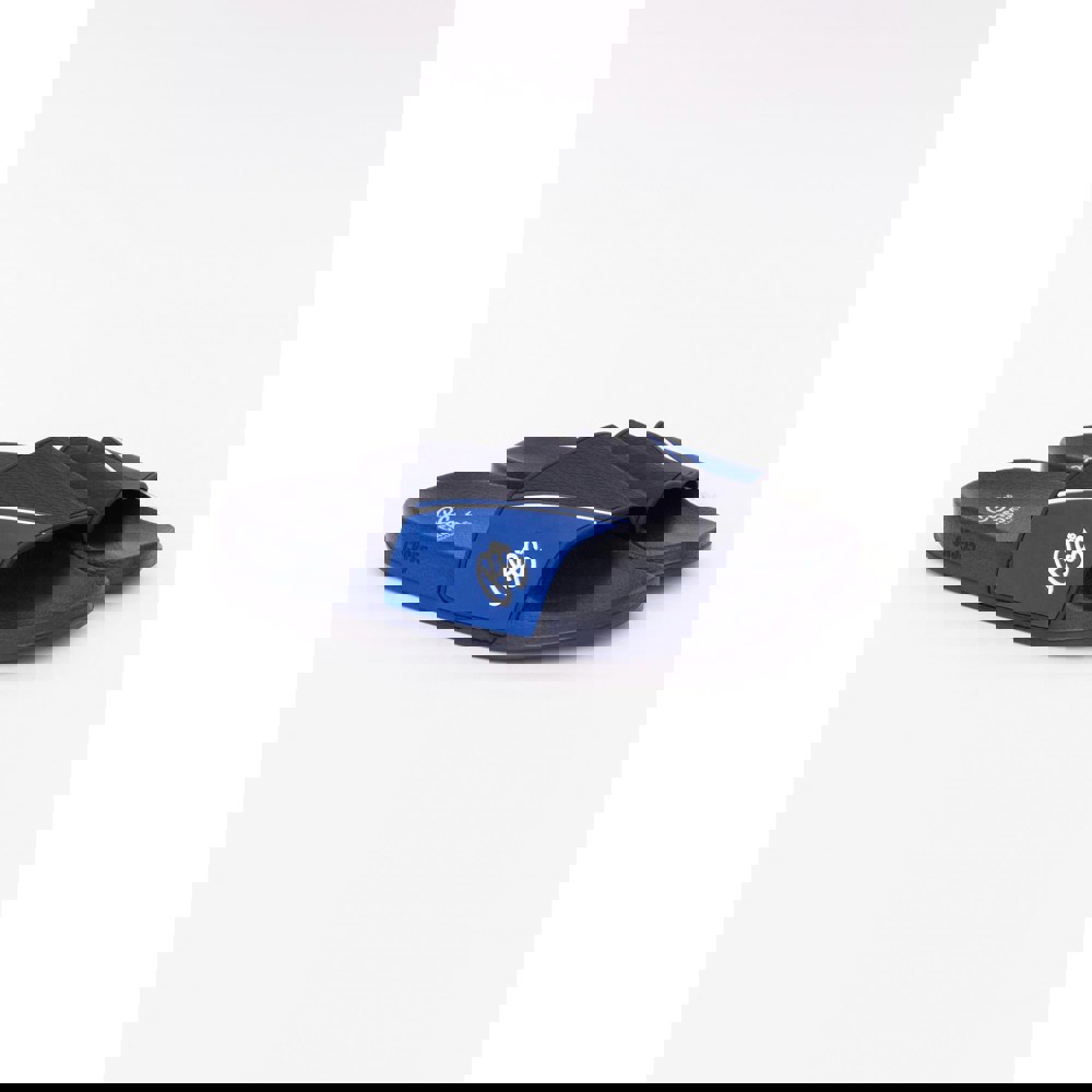 Crosshatch Ventamoore sliders in navy and blue with a slip-on design and open toe. The upper combines PVC and synthetic materials, with a comfort lining for everyday wear. A flat heel and cushioned construction keep the profile simple, while the lightweight build suits casual use.