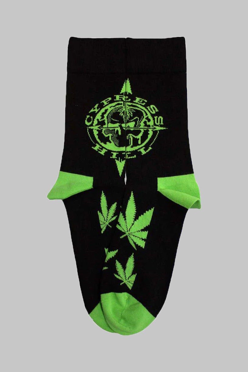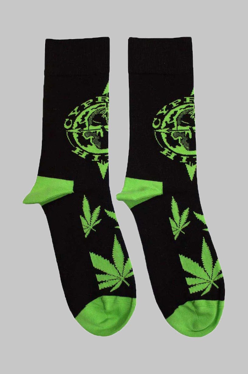 Official licensed Cypress Hill Unisex Ankle Socks featuring the 'Logo & Leaves' design motif. High quality Ankle Socks available in a black colourway. High quality 86% cotton, 12% polyamide, 2% elastane unisex ankle socks featuring an all-over pattern and cotton rich. These woven socks are guaranteed to stand out in the crowd.