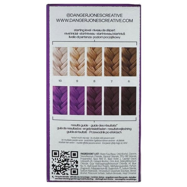 Transform your look with Danger Jones Semi-Permanent Hair Colours, designed for those who want vibrant, expressive shades with salon-quality performance. Each colour is formulated to deliver intense pigment, smooth application, and a beautiful fade that keeps your hair looking fresh and stylish. Get swept away with Cyclone a silver pastel. Hysteria has the right amount of violet to tackle the unwanted warmth in a canvas resulting in a beautiful berry shade.