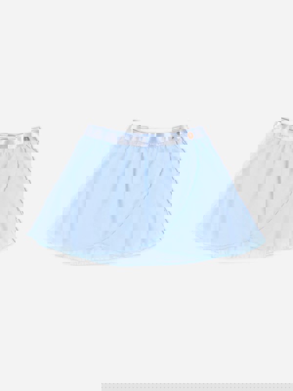 Danskin Girls Pirouette sheer skirt in blue. The sheer design creates a light, flowing look that moves with each twirl, making it a distinctive choice for a range of occasions. The vibrant blue hue brings a clear pop of colour, while the simple silhouette keeps the focus on the skirt’s airy finish.