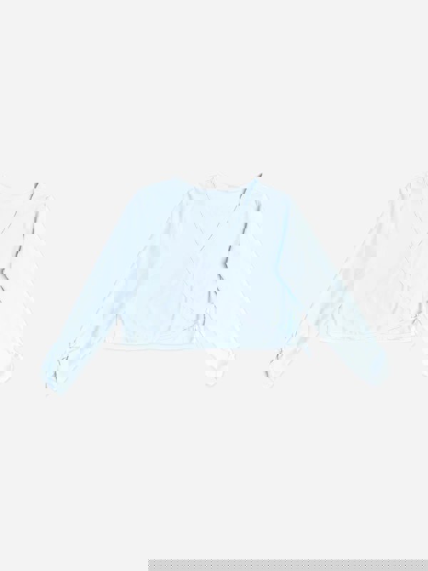 Danskin Rhythm wrap top for girls in blue. A simple wrap style that works as an easy wardrobe staple across the year.