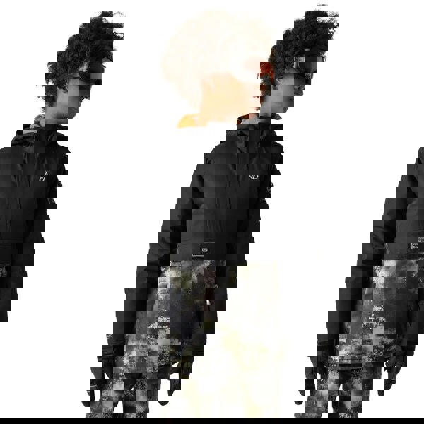 Made from 100% recycled polyester, this children’s ski jacket comes in black with a logo design and reflective trim. It combines a hooded neckline with a standing collar, plus a grown-on hood with elasticated detailing. Long sleeves are finished with inner stretch cuffs and a touch fastening tab for a secure fit.