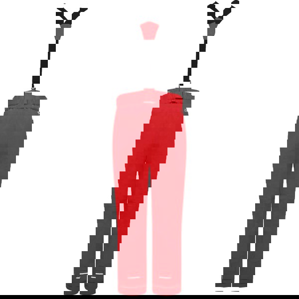 Practical details include two scrim-lined side pockets with zip fastening for small essentials, plus an elasticated, adjustable waistline. For added coverage and flexibility, the trousers feature a detachable bib and detachable braces, alongside articulated knees and a reinforced hem. High-loft insulation with a low bulk fill provides insulated warmth, while integral gaiters and taped seams help keep conditions out. Finished in Danger Red with reflective detail.