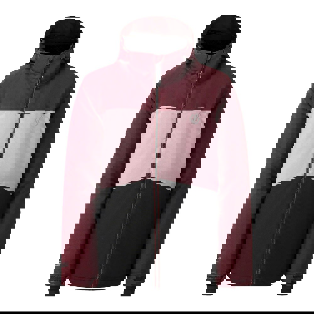 Made from 100% recycled polyester, the Dare 2B Send It! ski jacket comes in Fig with a printed design. ARED 30/30 fabric technology combines a breathable, durable construction with a water repellent, waterproof finish. The jacket is padded for high warmth and includes taped seams, an integrated snowskirt and a scrim back panel.