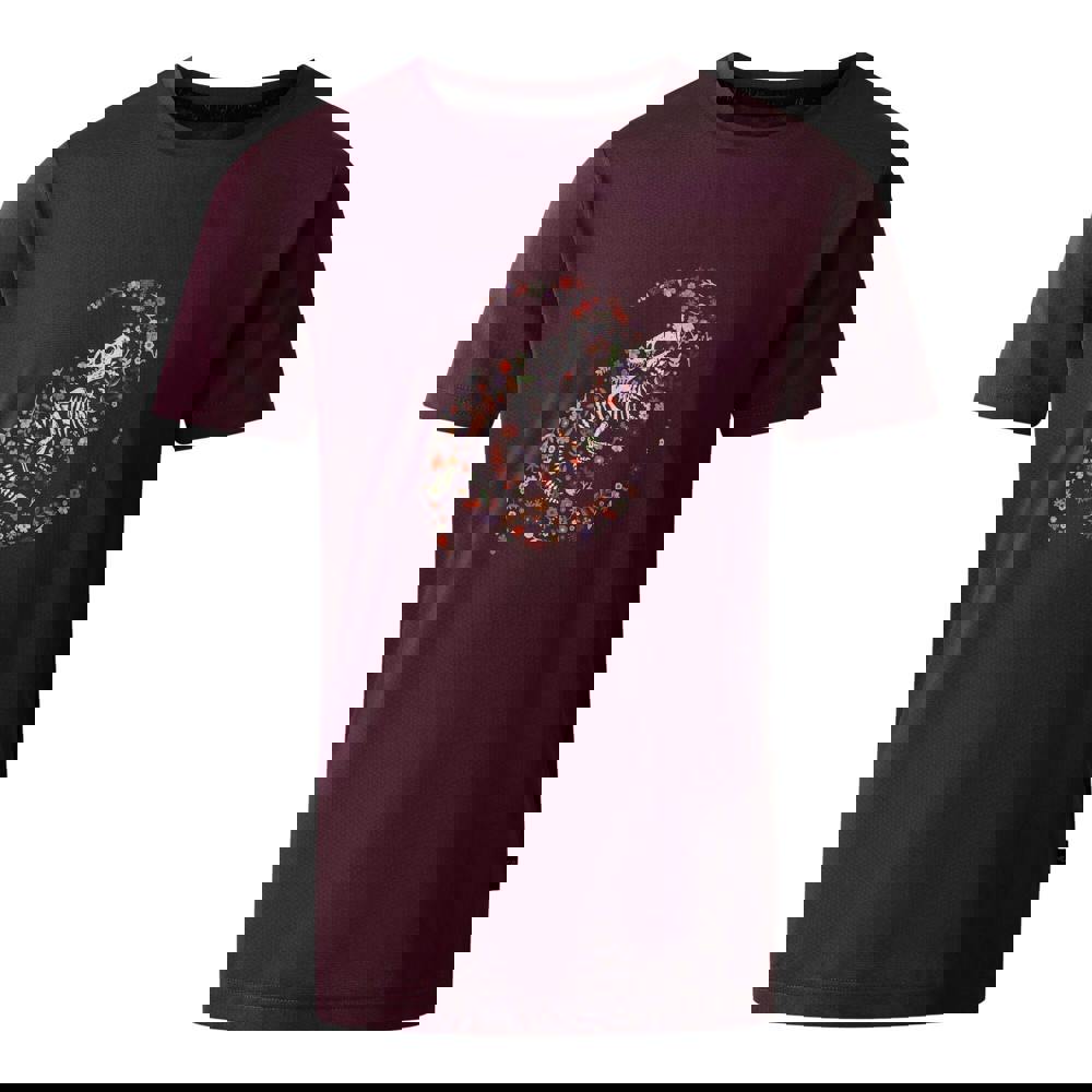 This kids’ Amuse II T-shirt from Dare 2B comes in deep plum with a dinosaur skeleton and flowers design. Made from 90% recycled polyester and 10% elastane, it has a lightweight feel with moisture wicking fabric technology. A crew neck and short sleeves keep the shape simple and easy to wear.