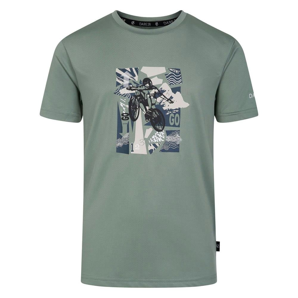 Dare 2B Kids Amuse II Monkey T-Shirt in Lilypad is made from recycled polyester. The mesh fabric uses Q-Wic technology and includes a lightweight, moisture wicking and quick dry finish. A graphic print brings together a monkey, headphones and logo details, with additional print on the sleeves.