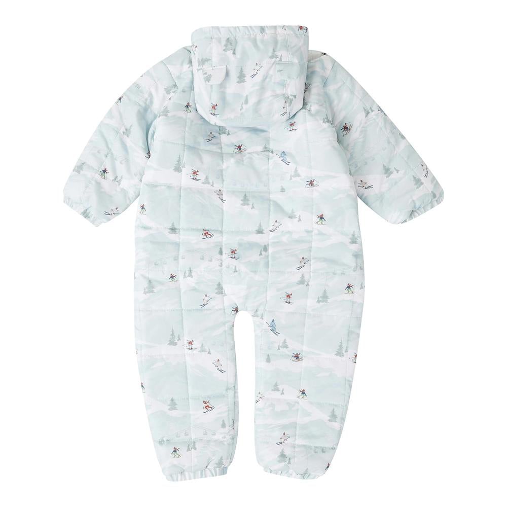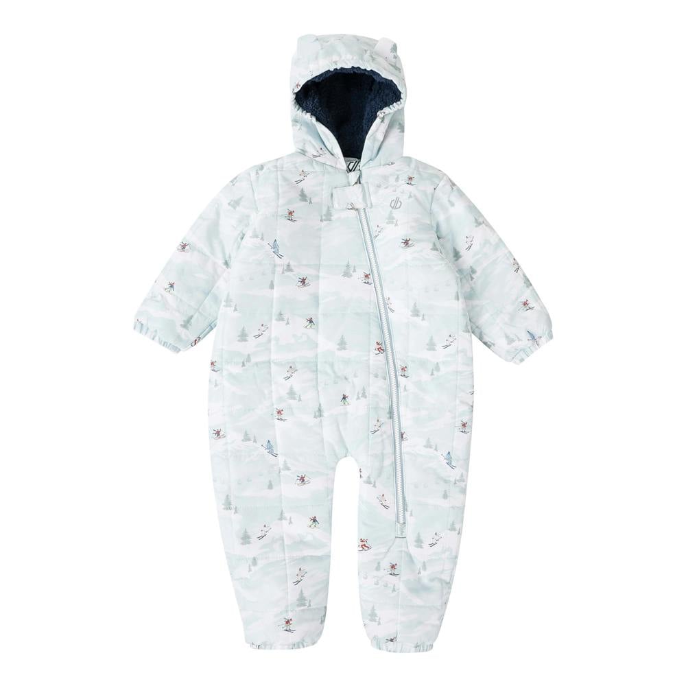 This kids’ Bambino II snowsuit from Dare 2B comes in a multicoloured all-over skiing scene print. Made from 100% polyester, it has a padded construction and a hooded neckline with a grown-on hood. The hood is elasticated and lined with sherpa.
