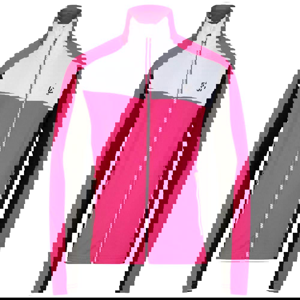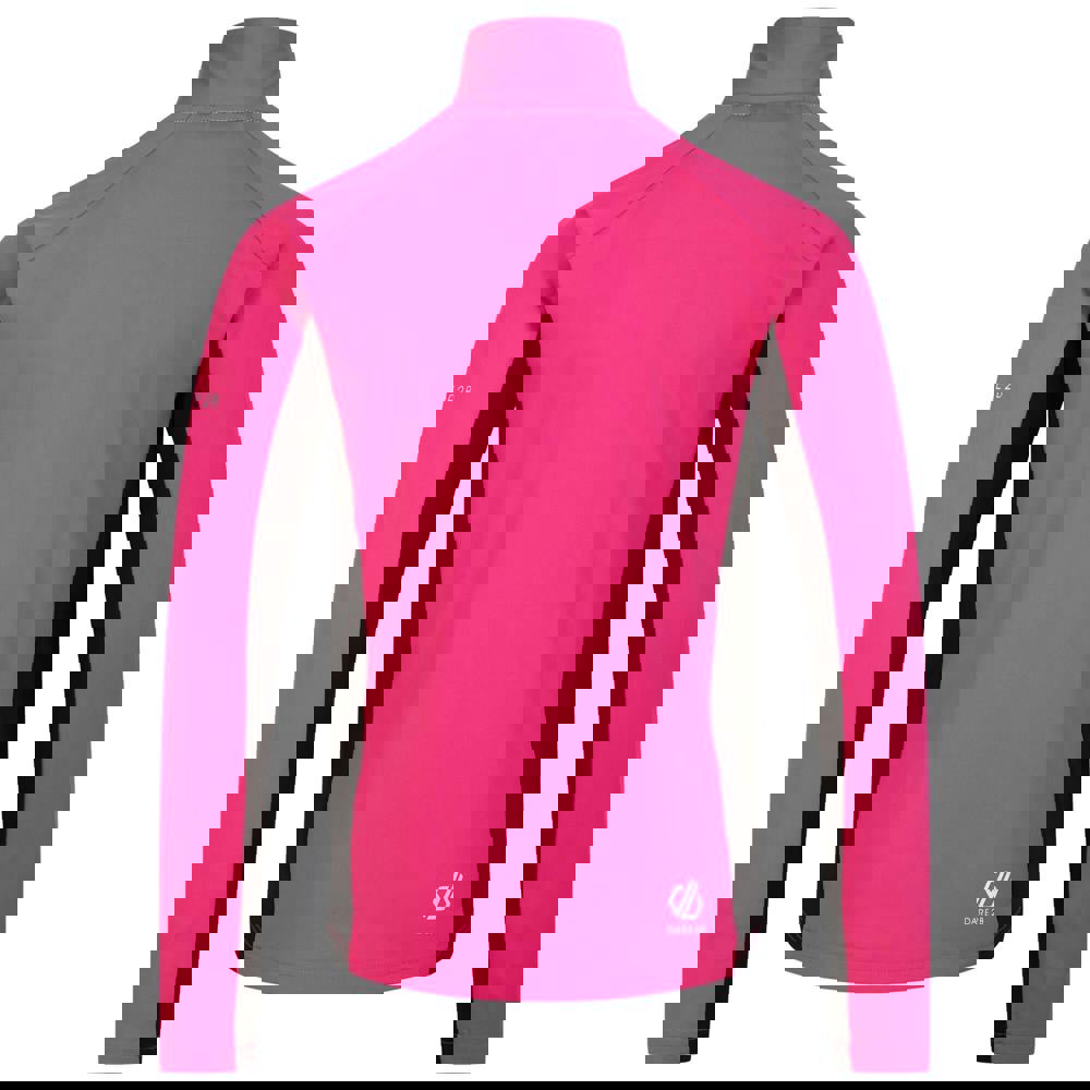 This kids’ Emergent Core Stretch midlayer from Dare 2B comes in pure pink and black with a contrast panel and logo detail. It is made from 95% polyester and 5% elastane, using brushed back Ilus Core Stretch fabric with recycled content.
