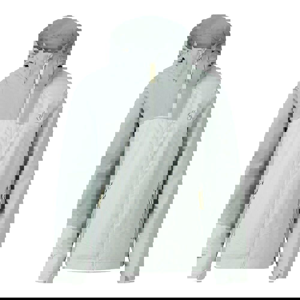 The Dare 2B Kids Explore III Waterproof Jacket comes in celadon with a colour block design. It is made from 100% recycled polyester, with a lining combining mesh, recycled polyester and taffeta. ARED 35K/35K fabric technology supports breathability, stretch and a durable water repellent finish, alongside a waterproof rating of 35000mm and 35000g/m²/24hrs.