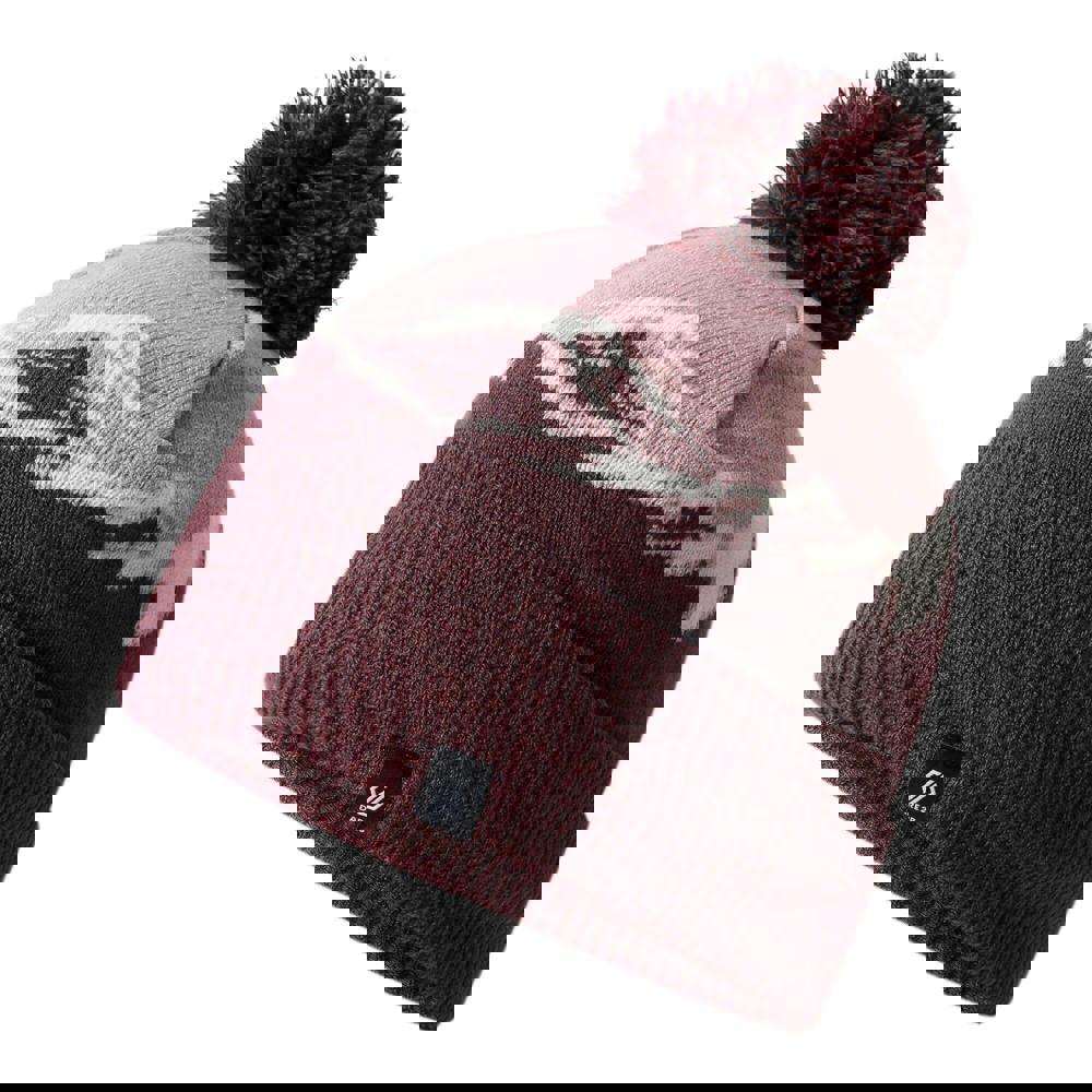 Cold-weather accessories get a playful finish with the Dare 2B Kids Fernie Bobble Hat in Fig/Lilas. This knitted hat combines contrast detailing with a mountain design and logo for a bold, graphic look. A pom pom tops the silhouette, while the ribbed cuff gives a neat, structured edge.