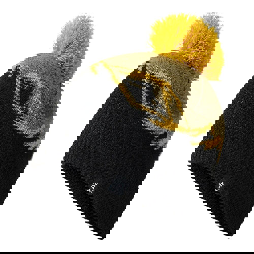 Cold-weather accessories get a playful finish with the Dare 2B Kids Fernie Bobble Hat. Knitted in martini olive and black, it brings contrast detail and a mountain motif to a classic bobble-hat shape, finished with a logo for a branded touch. A fleece lining adds an extra layer inside, while the ribbed cuff keeps the look neat and structured.