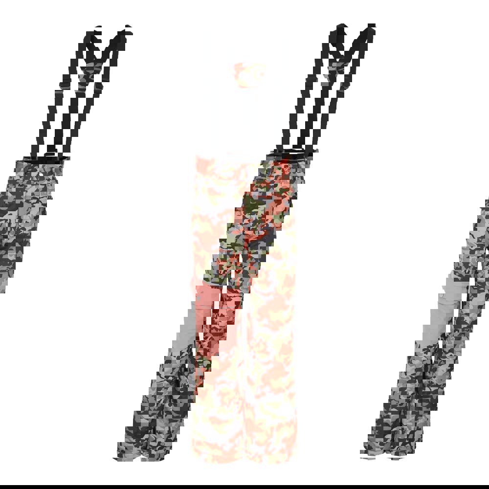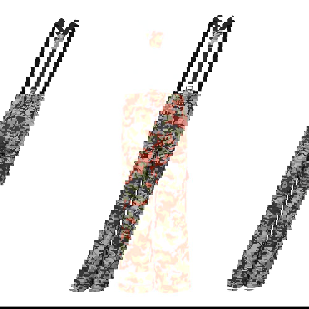 Dare 2B Kids Pow Camo Ski Trousers in orange rust with a camo design. Made from 100% recycled polyester with stretch fabric and a DWR finish. Waterproof and breathable with ARED 20/30 fabric technology and taped seams.