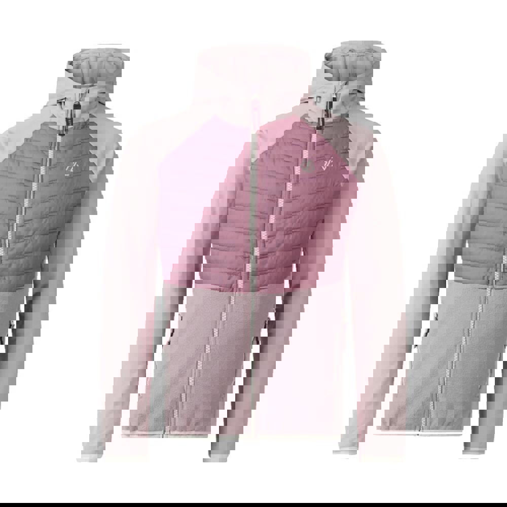 The Dare 2B Kids Switch Out Padded Jacket comes in Mauve Shadow/Dusky Orchid with a contrast design and logo detailing. It uses ripstop woven fabric with a 245gsm outer and Iloft filling at 80gsm. The lightweight construction is showerproof and includes reflective elements.