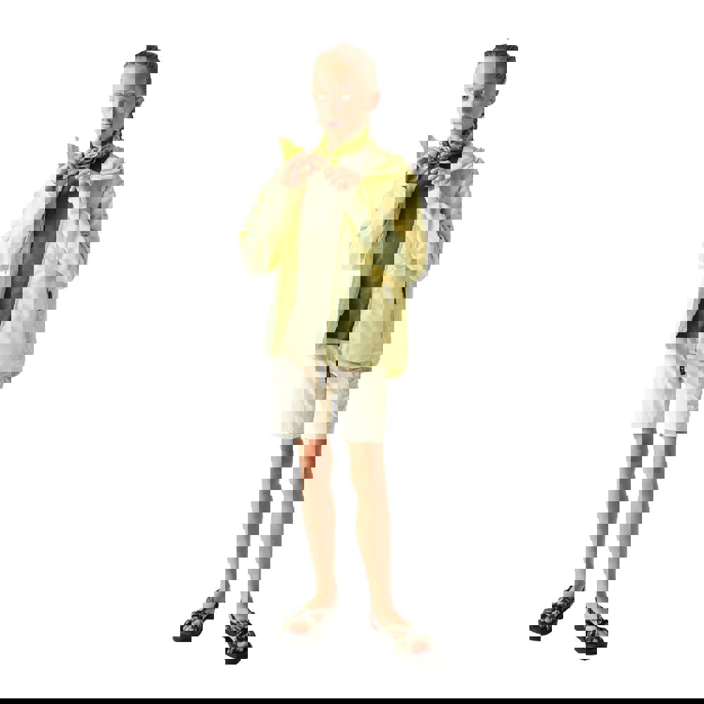 The Dare 2B Kids Switch Out Waterproof Jacket comes in wax yellow with a logo and reflective design details. It uses polyester twill fabric with a 95% cotton and 5% viscose composition, plus a lining in mesh, recycled polyester and taffeta. The fabric weight is 130gsm.