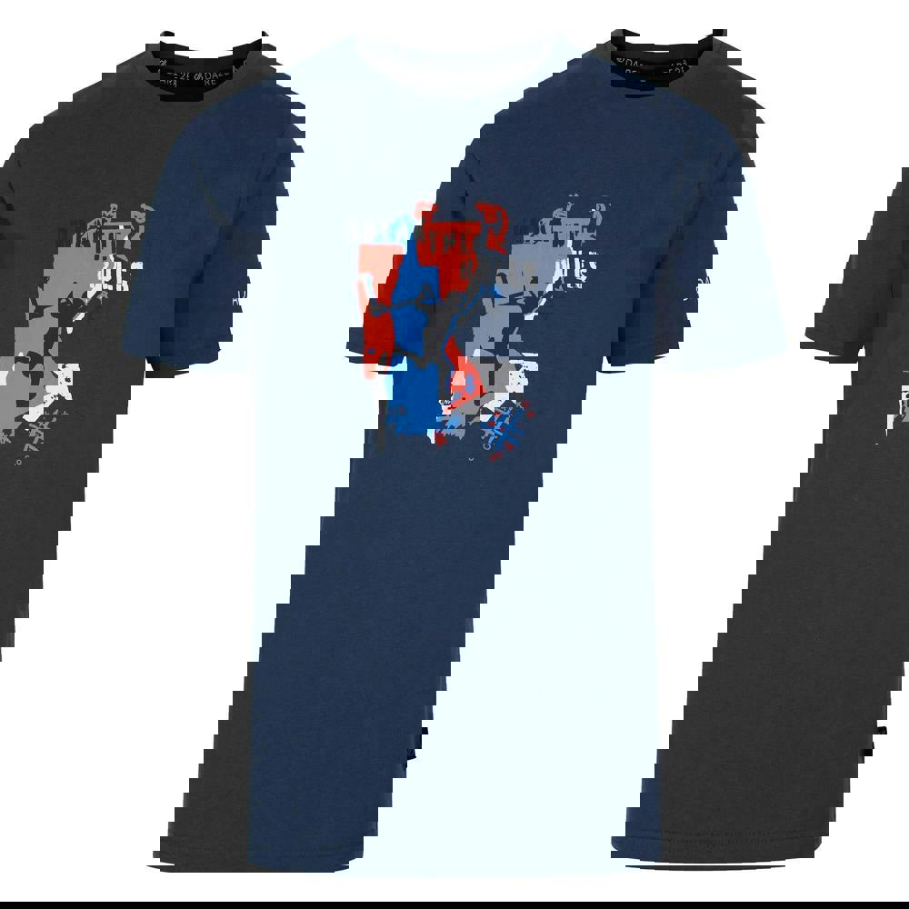 The Dare 2B Kids Trailblazer II Tidal Wave T-Shirt comes in Moonlight Denim and Peach Bloom with a jersey finish. Made from 100% BCI cotton, it has a crew neck and short sleeves for a clean, simple shape. The design combines clouds, a tidal wave, a surfboard, a tree, a skeleton, a logo and graphic print details.