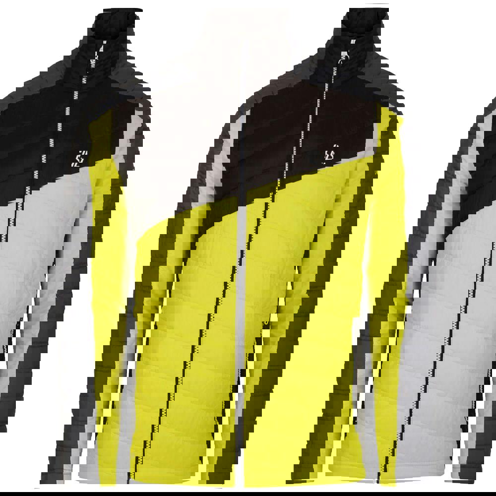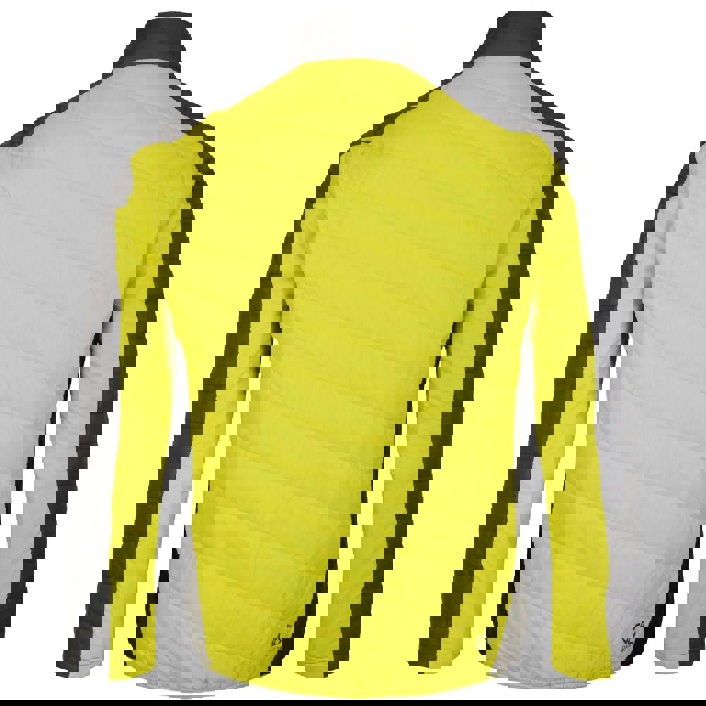 Long sleeves and a part elasticated hem provide a secure feel. The front fastens with a full zip, and two lower zip pockets keep small essentials close. Finished in Neon Spring and Black, it is styled as a hybrid jacket.