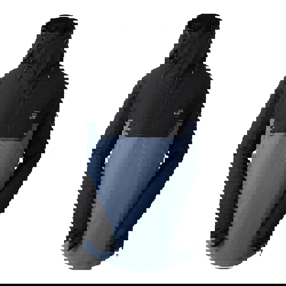 Made from 100% recycled polyester, this overhead ski jacket comes in a blue indigo colour block design with logo detailing. It has a high collar and a grown-on technical hood with a toggle adjuster and wired peak. Long sleeves are finished with touch fastening cuff tabs and thumb loops, while an adjustable hem allows a more secure feel.