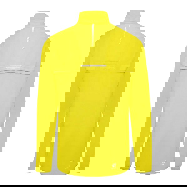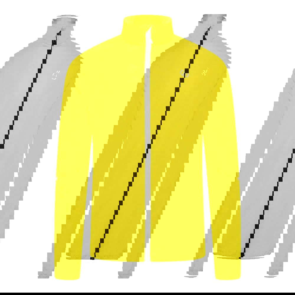 The Illume Pro Windshell Jacket from Dare 2B is a long-sleeved style with articulated sleeves and a standing collar. It is scrim lined at the collar and finished with a chin guard and inner zip guard for added coverage around the fastening. A mesh lining sits inside, while underarm vents add ventilation.