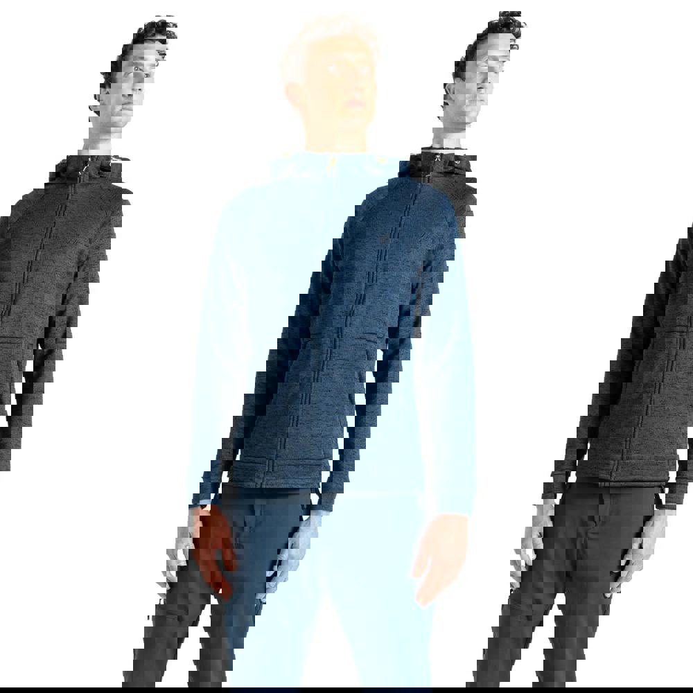 This hooded fleece-backed jacket is made from polyester and uses recycled materials. The knitted marl fabric is finished with a plain design and logo detailing for a clean, everyday look.