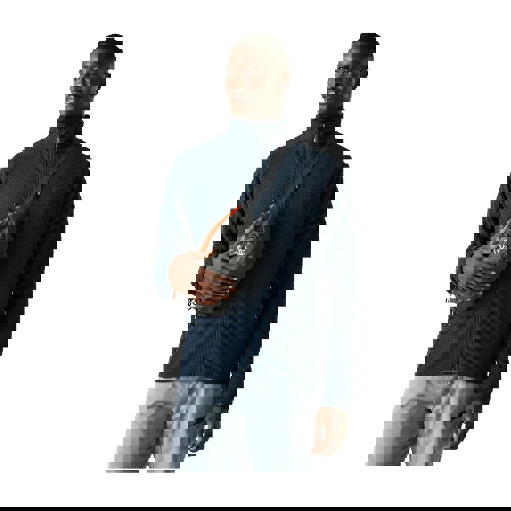 Built from 100% recycled polyester fleece, this men’s Switch Out Pro jacket from Dare 2B comes in navy with logo and zig zag detailing. The 230gsm fabric is lightweight and includes antibacterial and odour control properties, alongside quick-dry performance and thermal technology. SeamSmart technology supports comfort and movement.