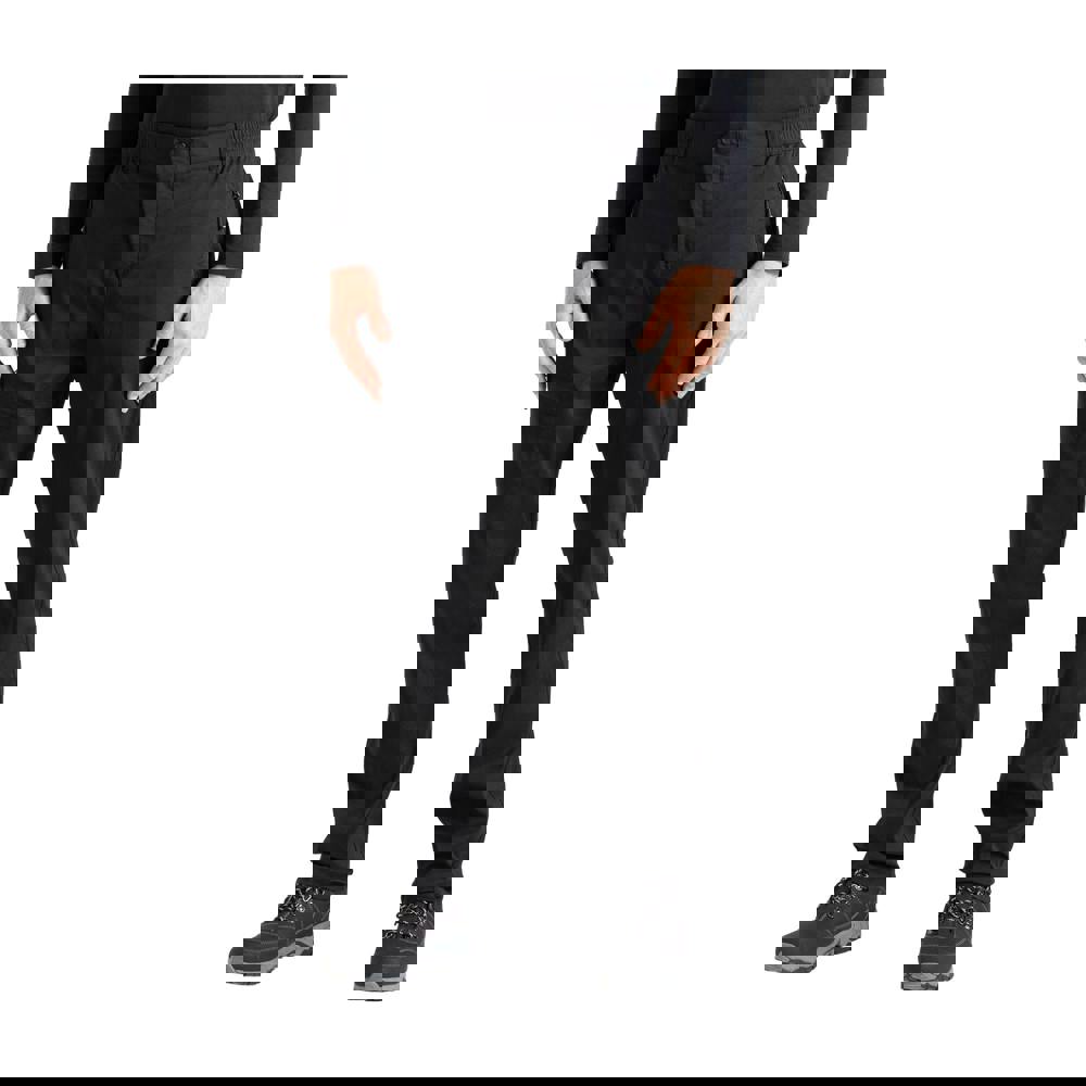These men’s Torrek Lite walking trousers from Dare 2B are made from 88% recycled polyamide and 12% elastane, with an ultra stretch fabric and a plain black finish. The design includes a button fastening with a zip fly, plus belt loops and articulated knees for a practical shape.