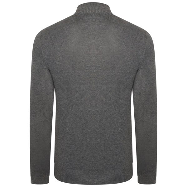 This knitted half zip sweatshirt is made from a 60% viscose and 40% cotton blend. It comes in charcoal grey and black with logo and stripe detailing, finished with a high-neck ribbed collar for a clean, structured look.