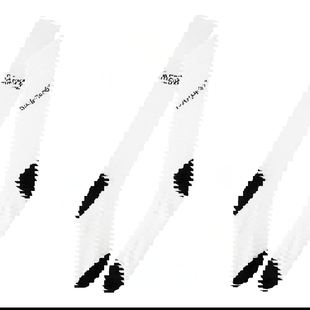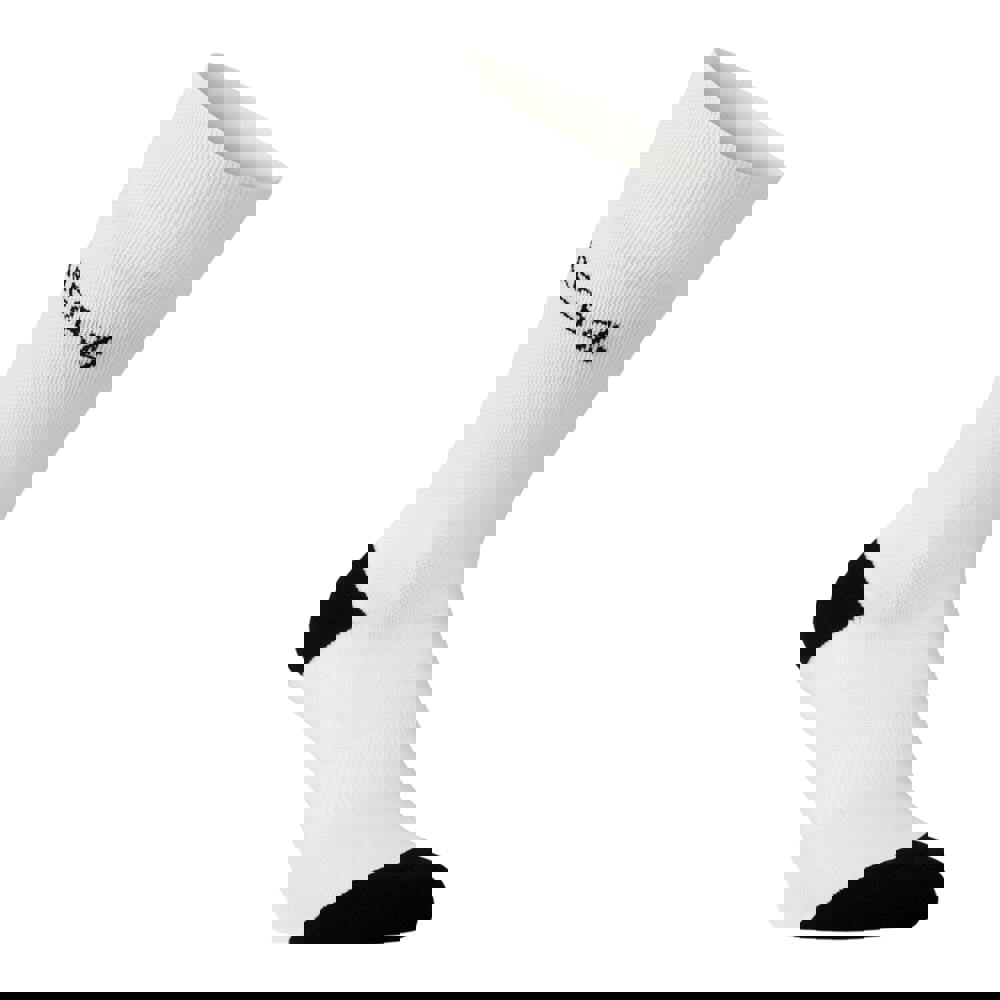 Dare 2B unisex adult performance cycling socks in white with a crew cut. The design includes contrast detail and a logo, with arch support and terry cushioning for added comfort underfoot. A ribbed cuff helps keep the socks in place during wear.