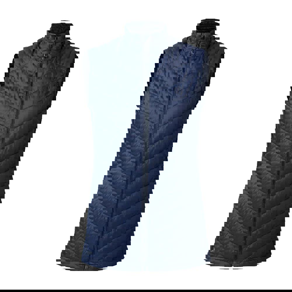 This sleeveless body warmer is made from a ripstop material blend of 47% recycled polyester, 45% polyester and 8% elastane. It has a quilted finish with a logo detail and a standing collar for a clean, structured look.