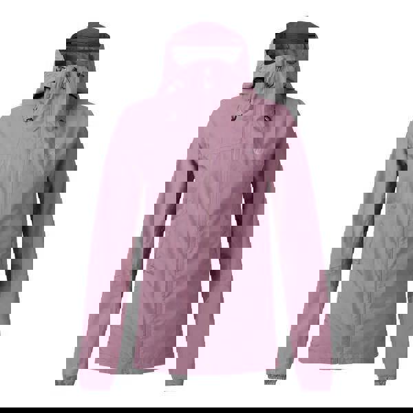 A hooded neckline and long sleeves provide coverage, while taped seams support weather protection. Ventilation is built in through underarm zips and a ventilated construction. The jacket fastens with a full zip and includes an adjustable hem. Two side zip pockets keep essentials secure. Made from recycled materials and finished without PFC, PFOA or PFOS.