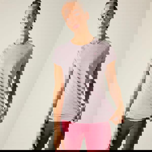 This short-sleeved T-shirt comes in Mauve Shadow with a plain design and a scoop neckline. Made from 100% polyester, it uses mesh and Q-Wic material for a lightweight feel and includes mesh panels for added detail. The regular length keeps the silhouette clean and easy to wear for everyday outfits.